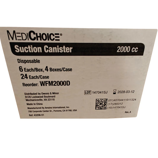 (24 Case) MediChoice 2000cc Disposable Suction Canisters with Lid and 2 Elbows